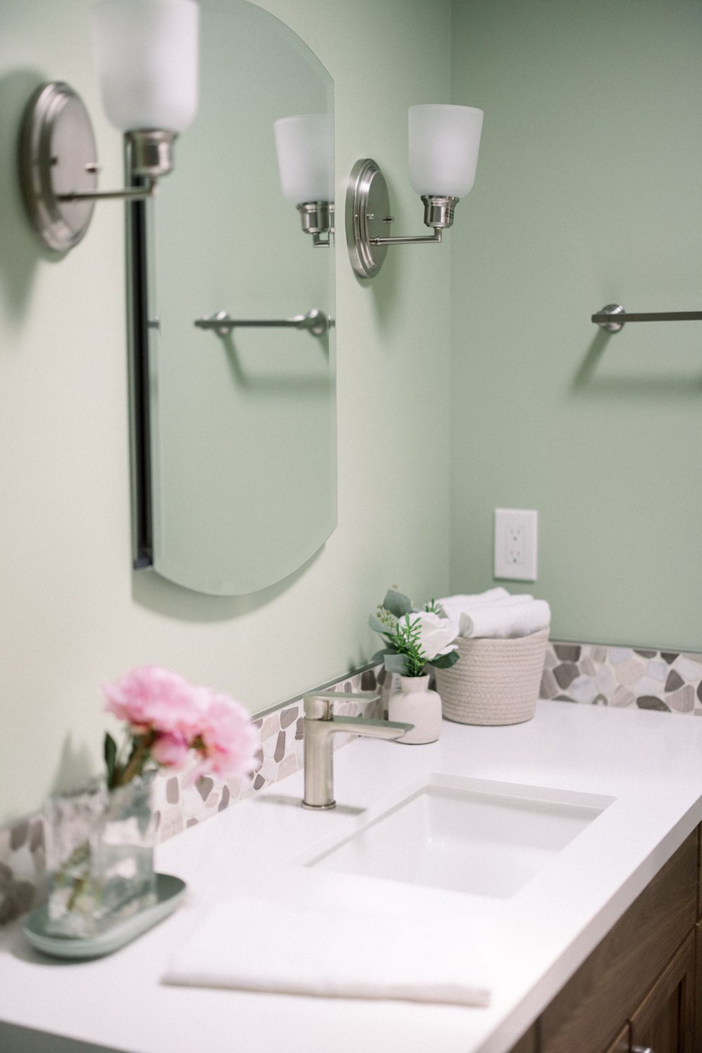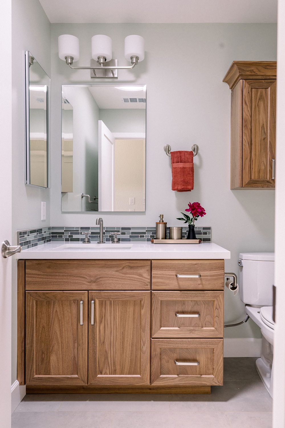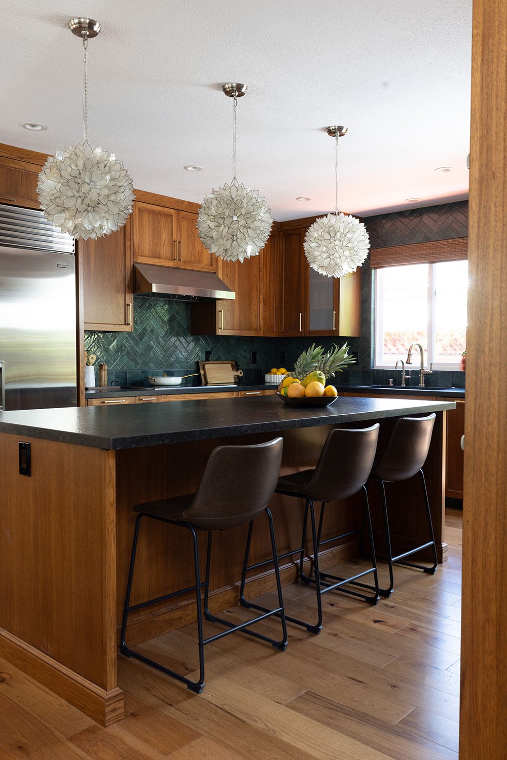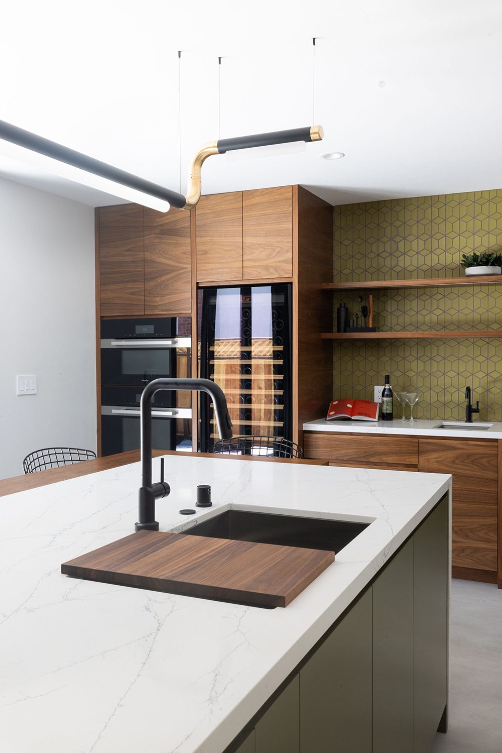 They dreamed of a kitchen with an island for seating, a seamless indoor-outdoor flow, and a minimalist European vibe with a bold pop of color. As for the bathrooms, they saw them as a chance to show off their love for bold graphics and sleek, minimalist design. Check out how our design team brought their vision to life, transforming their spaces from blah to beautiful.