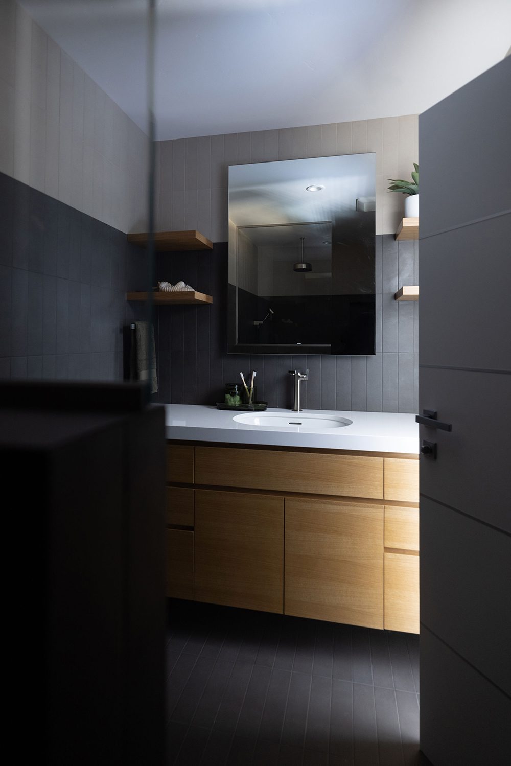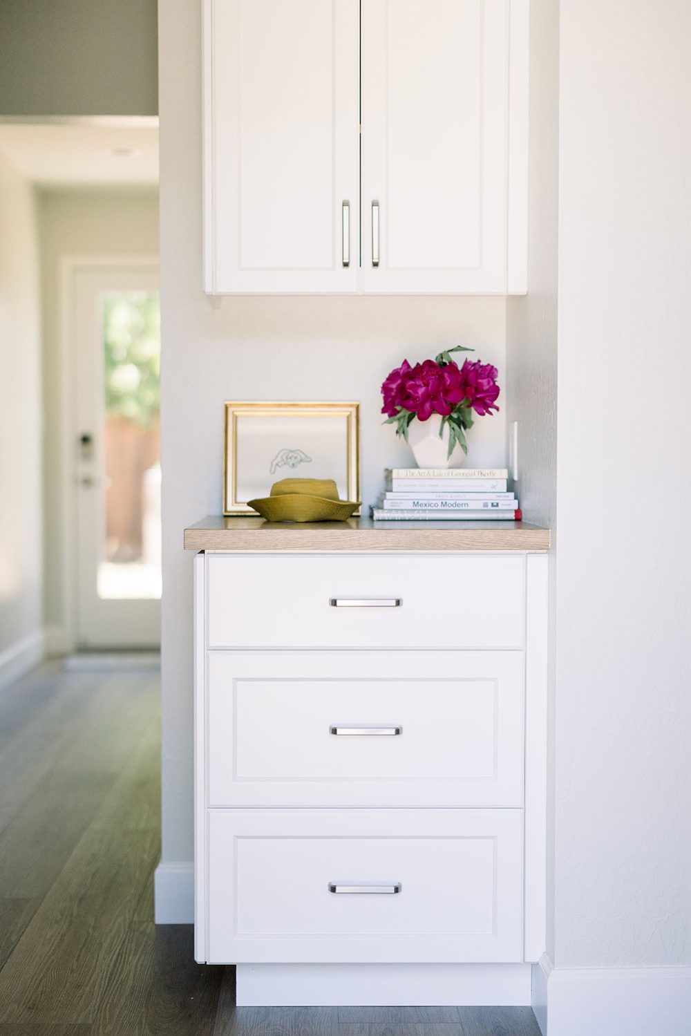 The standout transformation was converting the garage into a family room and moving the kitchen into what used to be the family room. To give the space an open, airy feel, they added a panoramic door and an open-beam ceiling—exactly the vibe they were going for. The former living room became a third bedroom with an ensuite bath, offering guests a private retreat. By shifting the main entry to open into the expanded social areas, the bedrooms gained more privacy. They also added a powder room and wet bar off the family room, making it super convenient for entertaining. In the end, the home went from a 3-bedroom, 2-bath layout to a 4-bedroom, 3.5-bath, all without increasing the overall footprint. It’s a smart, stylish transformation that fits their lifestyle perfectly.