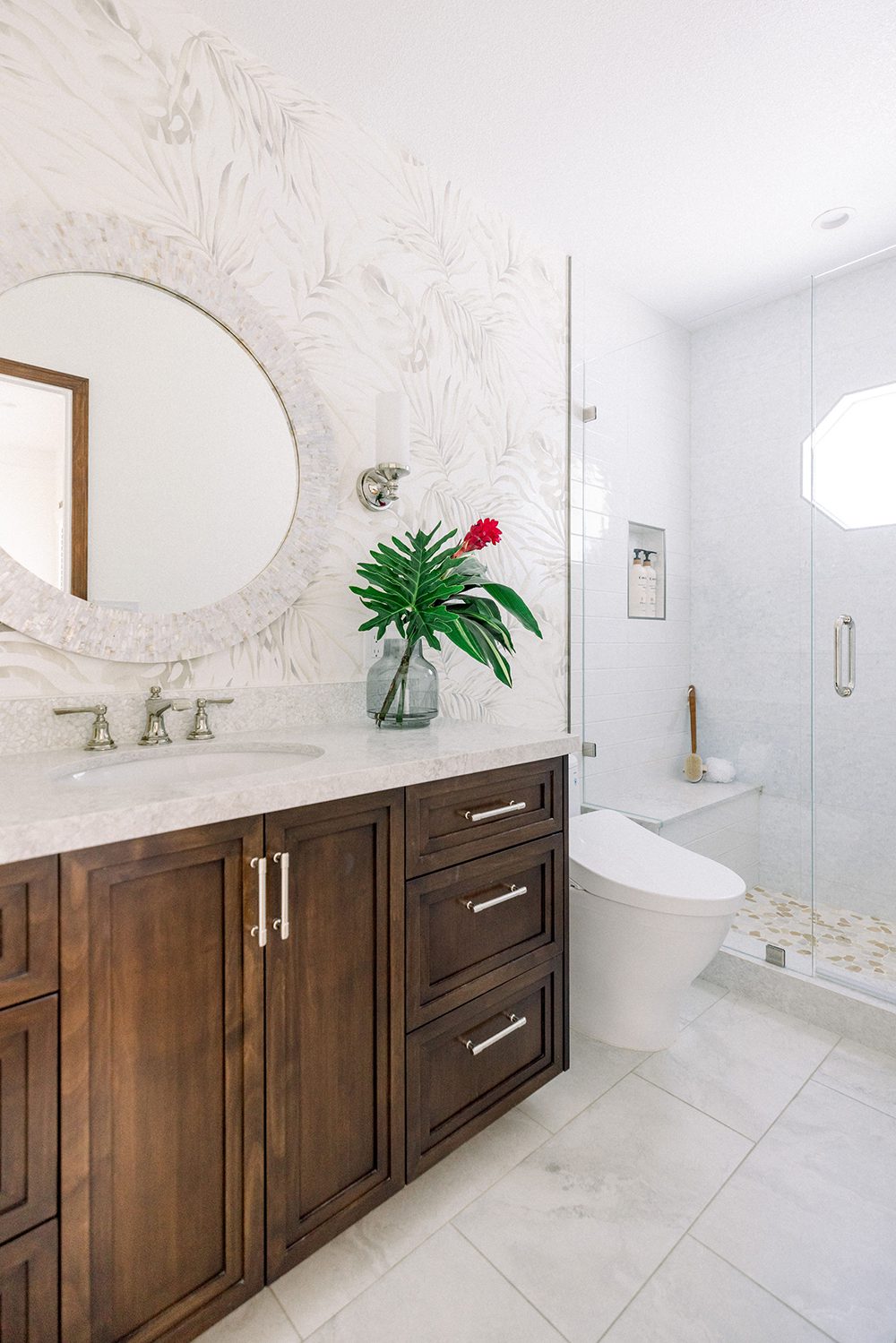 At just 12 square feet, the old stall shower felt too cramped, especially for a couple planning to age in place. On top of that, the 1970s design lacked the functional storage needed for a modern primary bath. Enter senior designer Joy Allen, who expanded the shower footprint, removed a non-load-bearing wall, and introduced custom storage solutions. The result? A smart, stylish transformation that made the space feel bigger and way more functional.